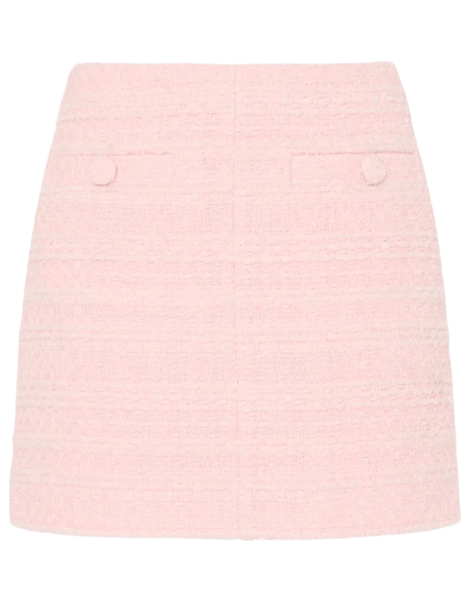 Cut from lightweight tweed fabric, this mini skirt is accented with buttons on each pocket. For the full look, wear it with its coordinating Bryn Tweed Top.