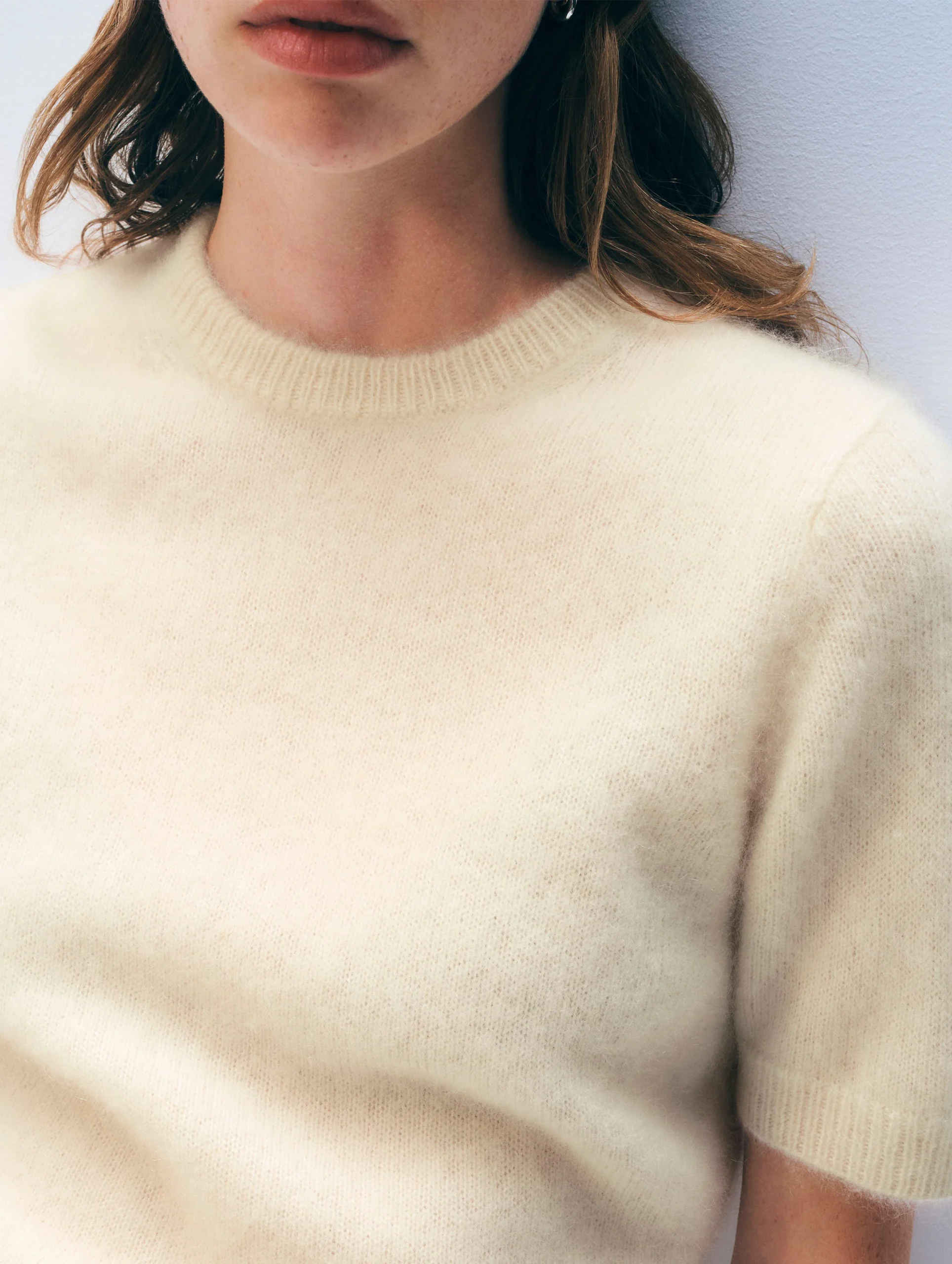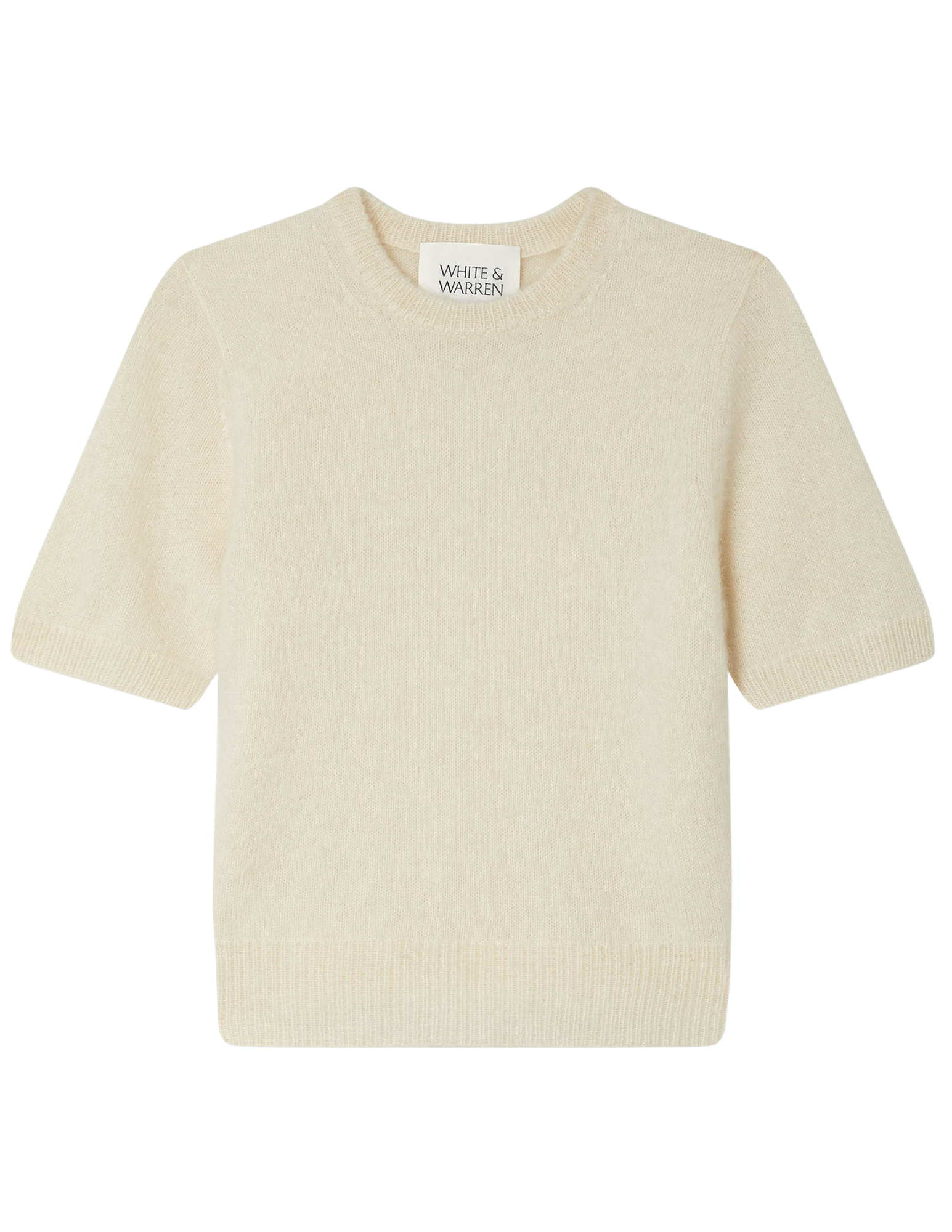 A classic, reimagined in 100% brushed cashmere. Knit in a classic weight, this elbow-length tee is finished with clean ribbed trims for a softly textured hand feel, transitioning seamlessly from season to season.