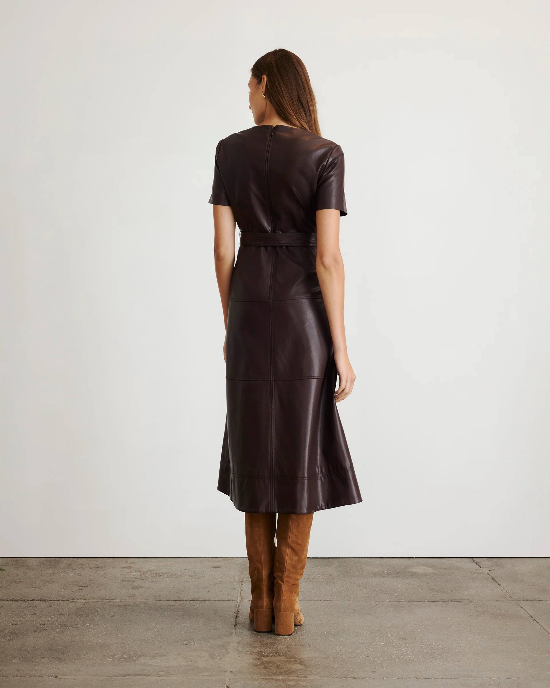 Featuring a figure-grazing fit with short sleeves, a self-tie belt, and A-line skirt, Ella’s silhouette is approachable with a modern twist.
