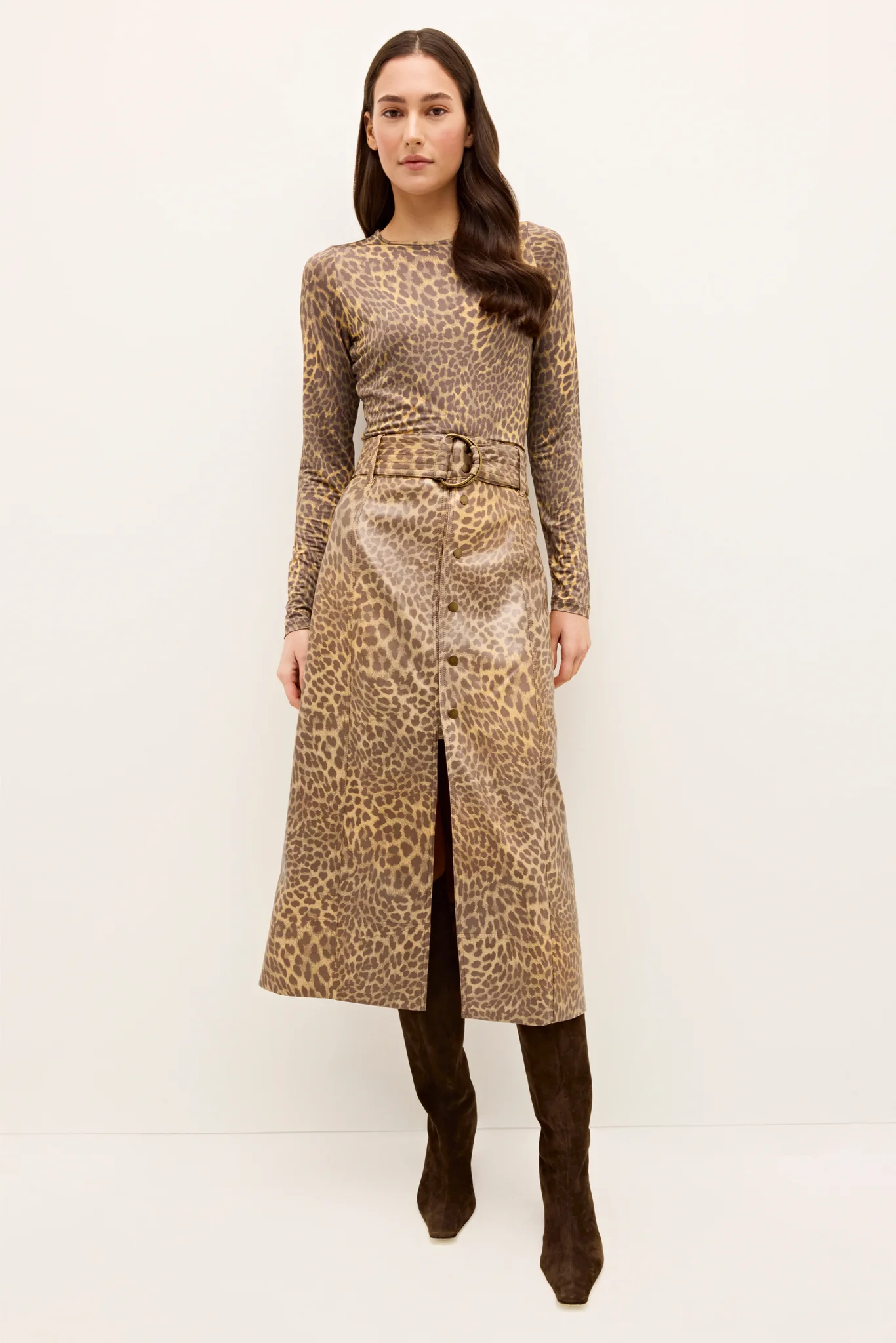 Hazel does a lot with a little. Soft and slinky, this fitted jersey knit top, features a classic crew-neck silhouette with Marie Oliver’s washed Leopard print. It’s the kind of easy-to-pack piece that occupies minimal suitcase real estate but delivers maximum style. Beautiful tucked into your favorite pants and skirts, we love pairing it with the matching Chelsea Skirt for a complementary set that’s an Outfit with a capital O.
