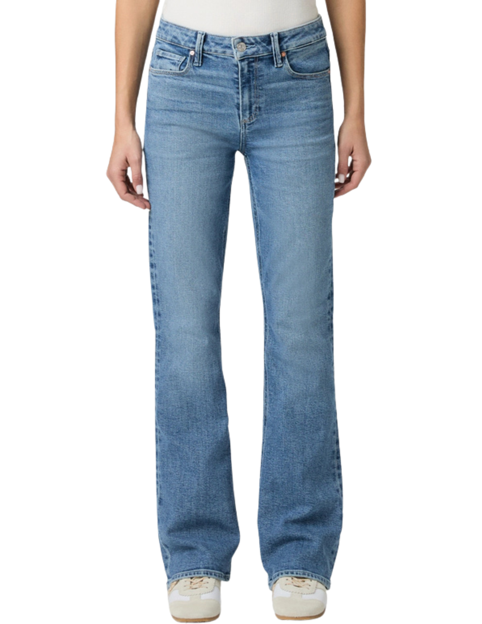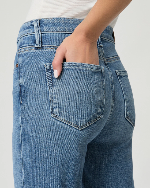 The High Rise Laurel Canyon is a vintage PAIGE style that has made a big comeback. Cut from TRANSCEND VINTAGE denim in a light vintage-inspired wash with marble texture, a raw hem and a 32″ inseam, this classic bootcut silhouette combines the signature comfort of Transcend with rich denim character for a lived-in look.