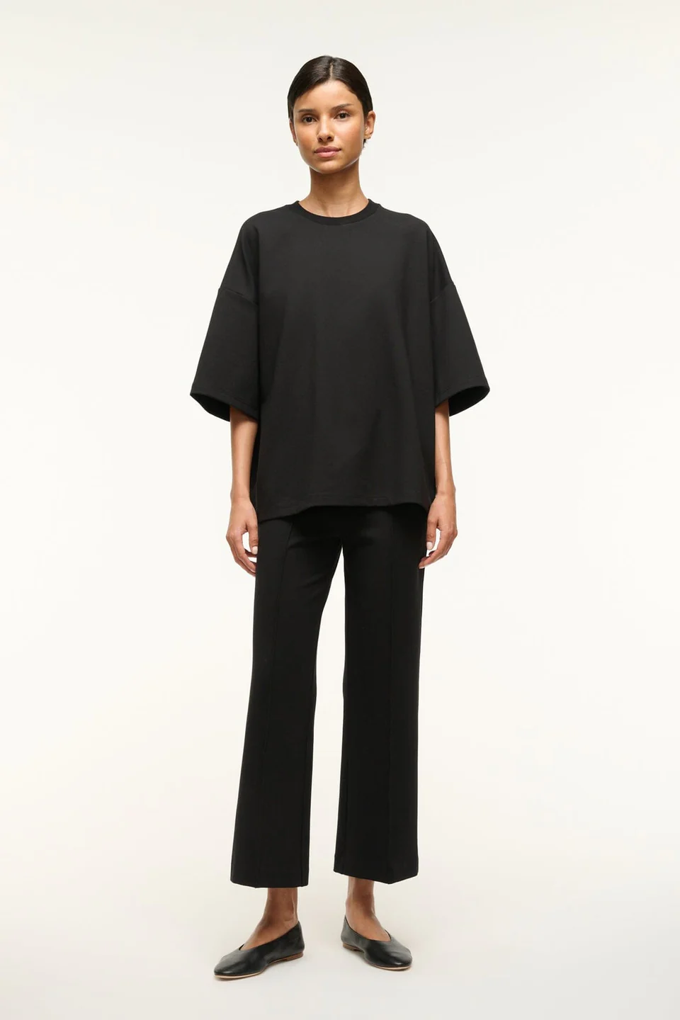 An ankle length pant made out of a stretchy ponte knit fabric with princess seams at the front and a center back zipper. Pair with the Capsule Top for a matching set.