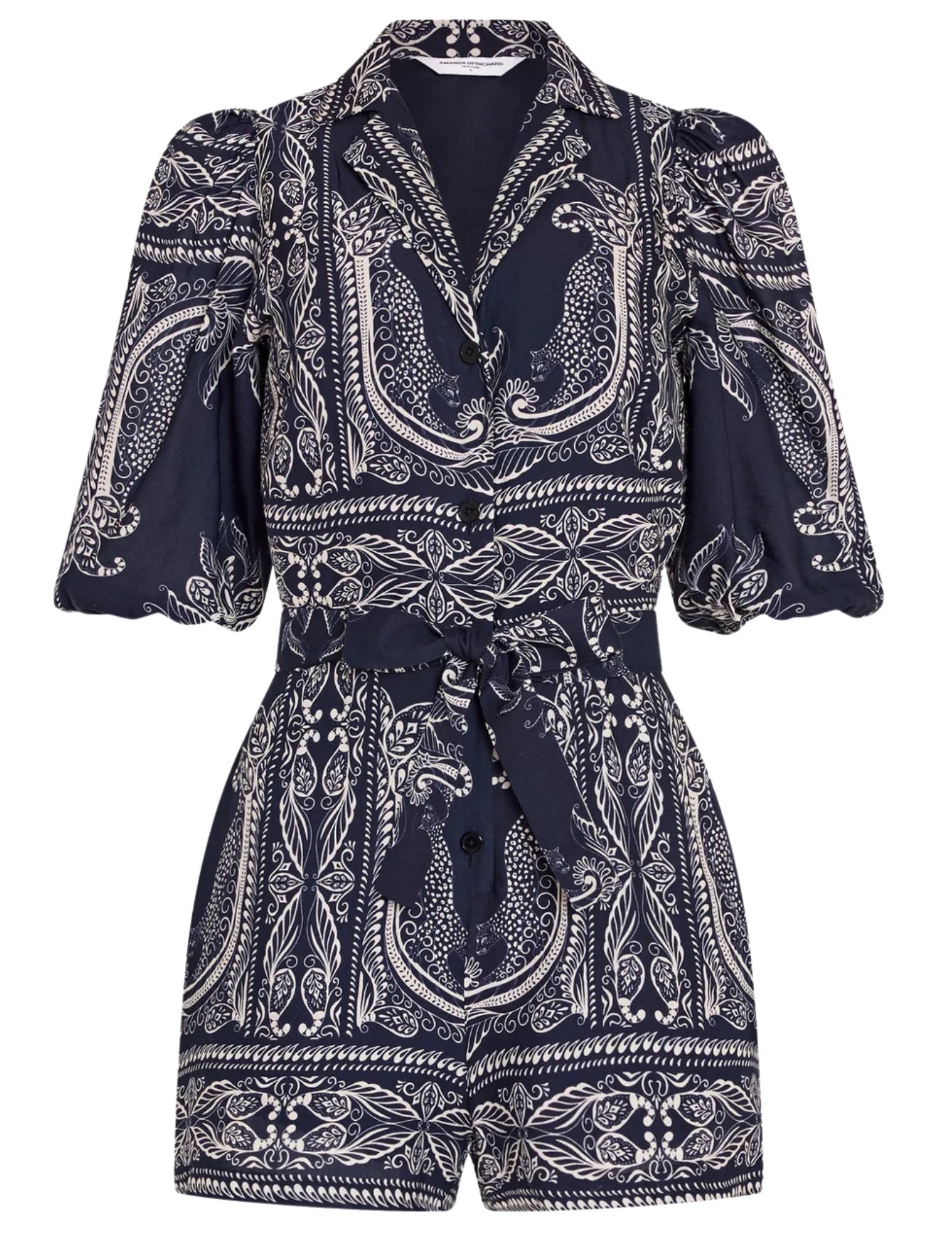 Stay cool in the Lucia Romper. With a fresh print, gathered sleeves, and a flattering self-tie waist, this romper is made for sunny adventures. Pair with sandals for plans that go from day to night.