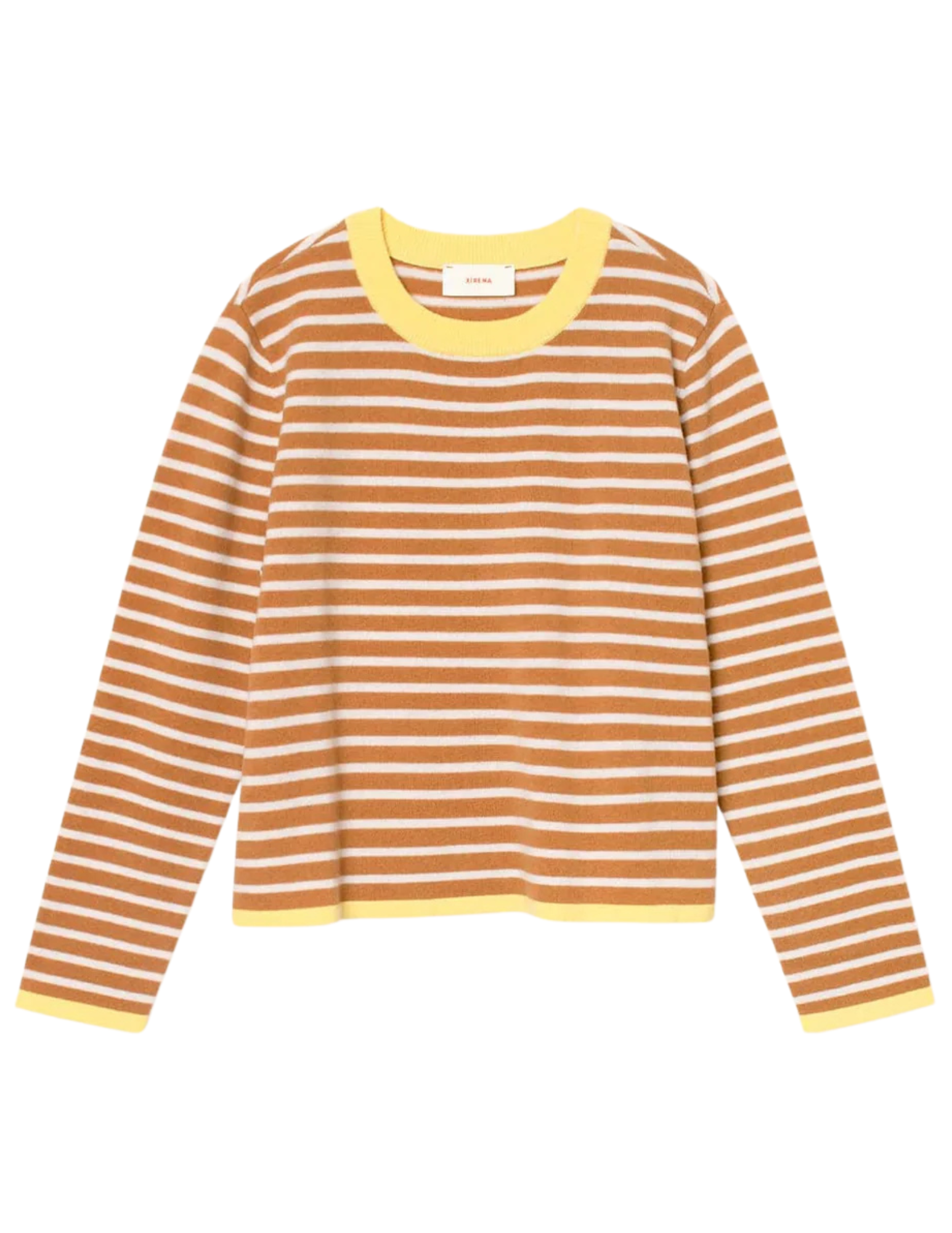 Striped Delight. Maxwell is new this season in Xirena’s ultra-soft striped cashmere wool blend. This crewneck sweater features contrast color trim at the neck, cuffs, and hem.