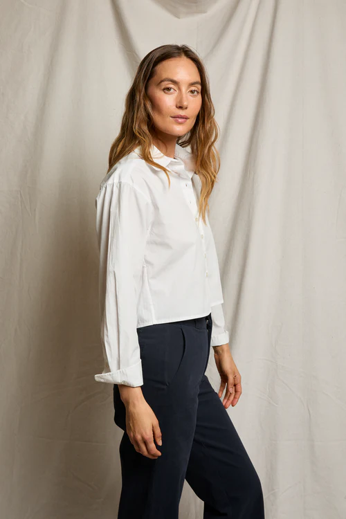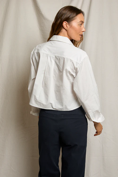 the naomi is PWT’s fresh, slightly cropped take on the classic long sleeve button-up. cut from crisp cotton poplin, it features an easy, boxy shape that feels modern and effortless. with its clean collar, it’s the perfect piece to pair with high-waisted anything.