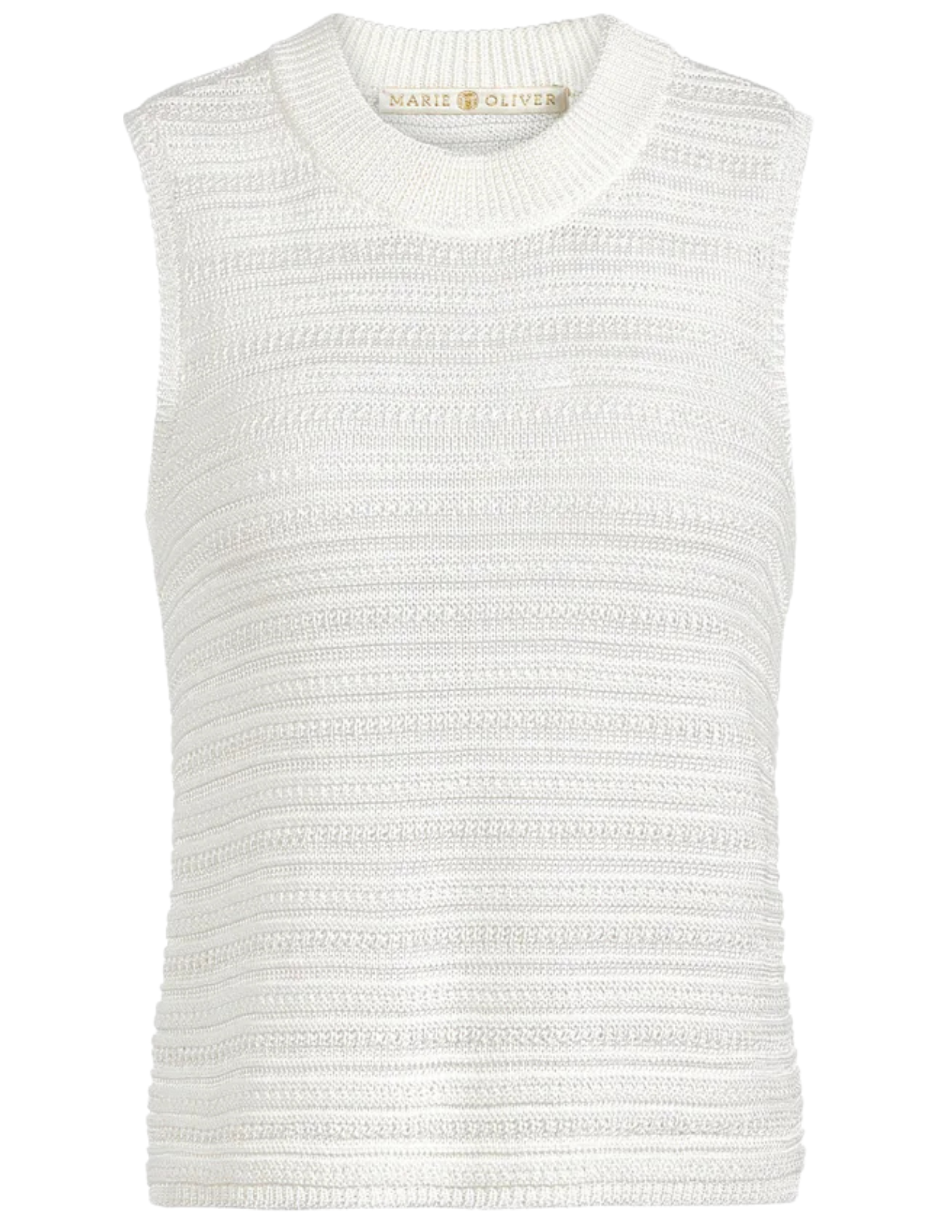 File Nev under elevated summer essentials. With its horizontal rib texture and subtle sheen, this slinky knit shell adds polish to warm-weather dressing. Wear it loose or tucked into your favorite shorts for a complete look!