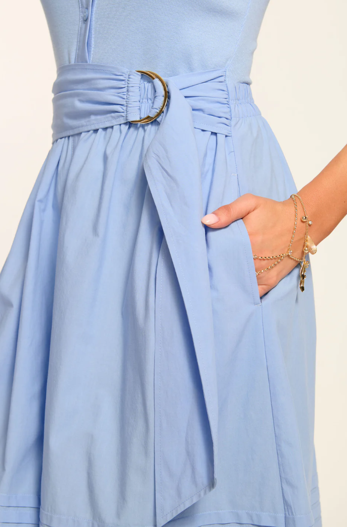 The Odessa has everything: a belted waist, flutter sleeves, pockets, and a button front. The Odessa features a ribbed knit bodice with a cotton skirt and trim details. Its a natural choice for resort mornings, weekend travel, and effortless warm-weather dressing.