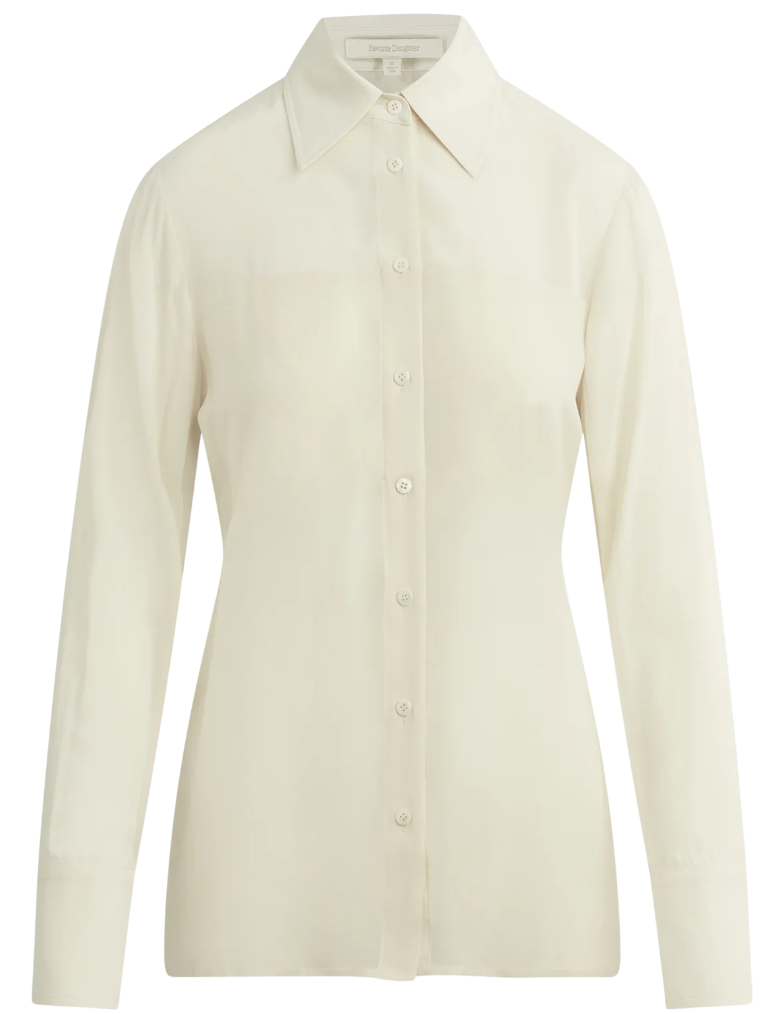 A little sheer, a lot sophisticated. Favorite Daughter’s new collared button-up in opaque viscose has sheer sleeves that make a classic look feel effortlessly chic.