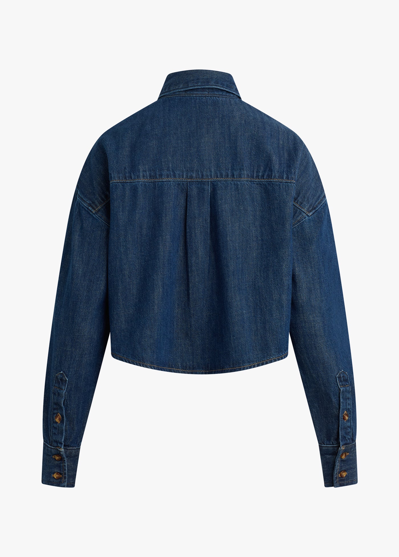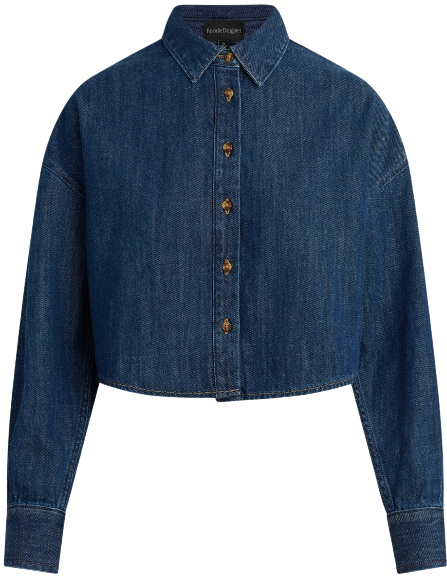 It’s a fan favorite with slightly cropped styling. The Crop Ex-Boyfriend Shirt is an oversized button up cut from a rich, dark blue rigid denim (that lightens with each wash) with a relaxed fit and pointed collar. With the shortened length, you’ll find it’s super versatile as an unbuttoned layer over your favorite tank or buttoned up with absolutely anything.