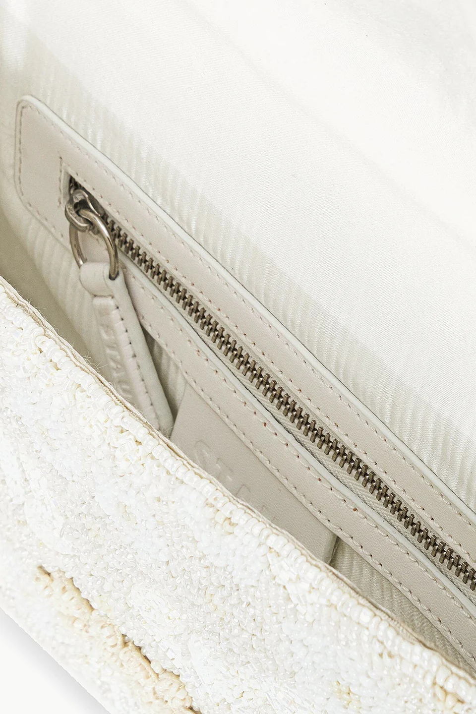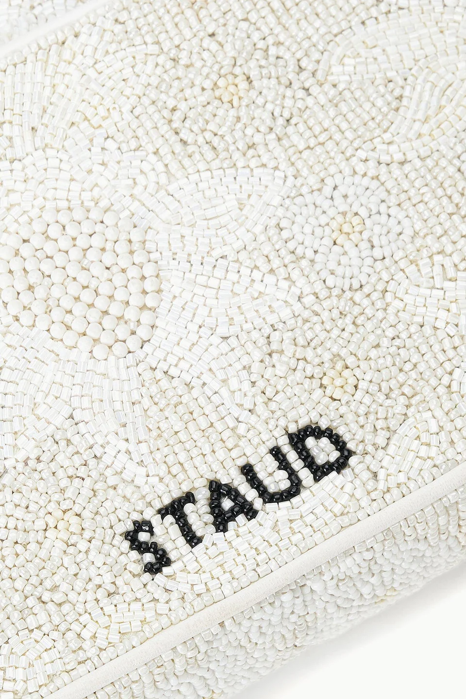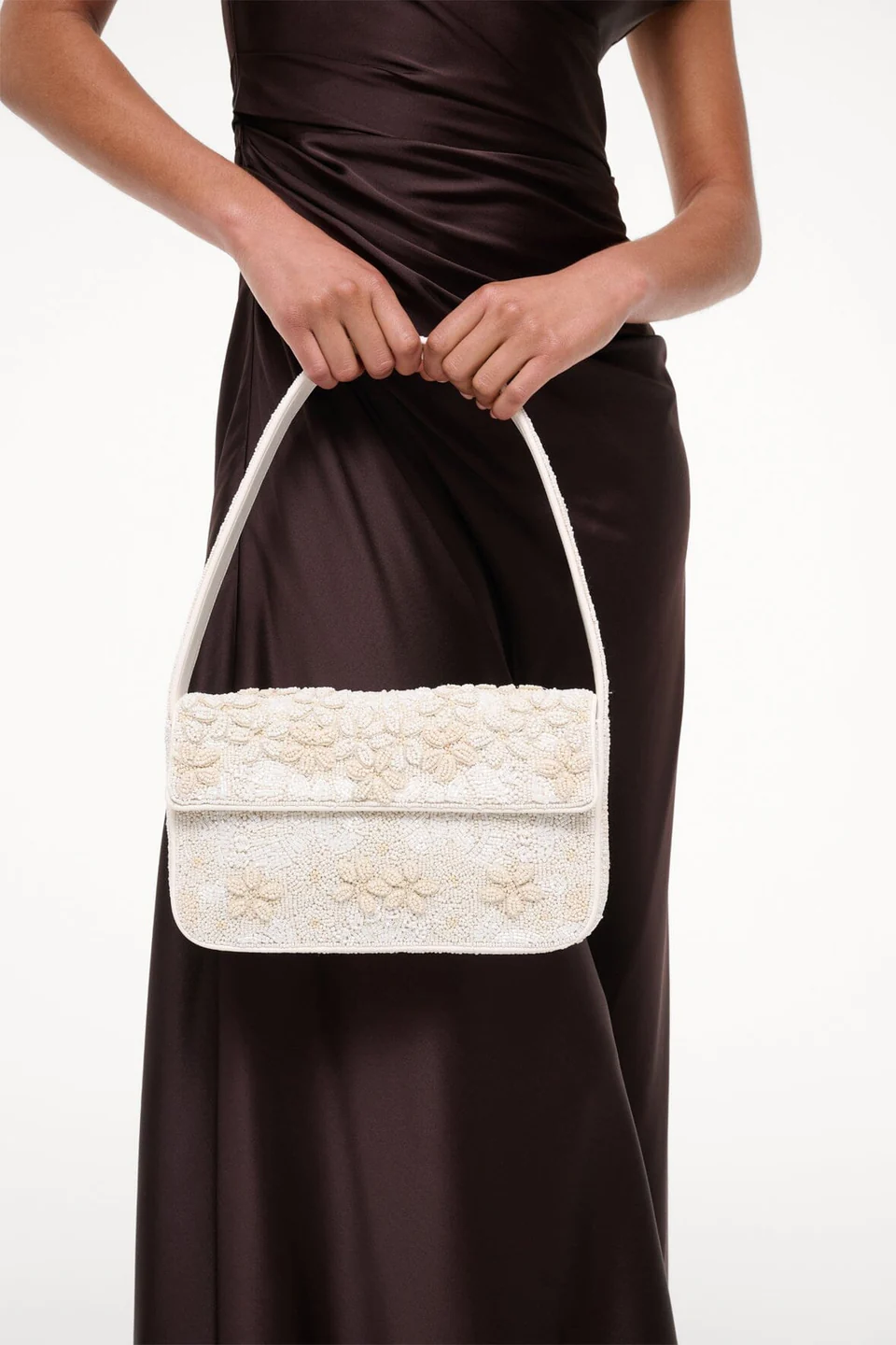 The classic hand-beaded shoulder bag with vegan leather piping. This Tommy update features embellished 3D flowers and magnetic snap closure.