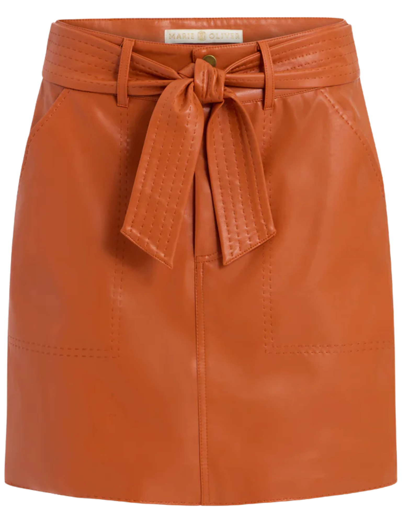 Crafted from updated vegan leather, the Vallie Skirt is one of those building-block styles that pairs well with almost any signature top. Add the optional tie belt for a stylish bow detail or skip it for a cleaner finish. Vallie is pictured here in a deep orange, and paired with the fun Hazel Top.