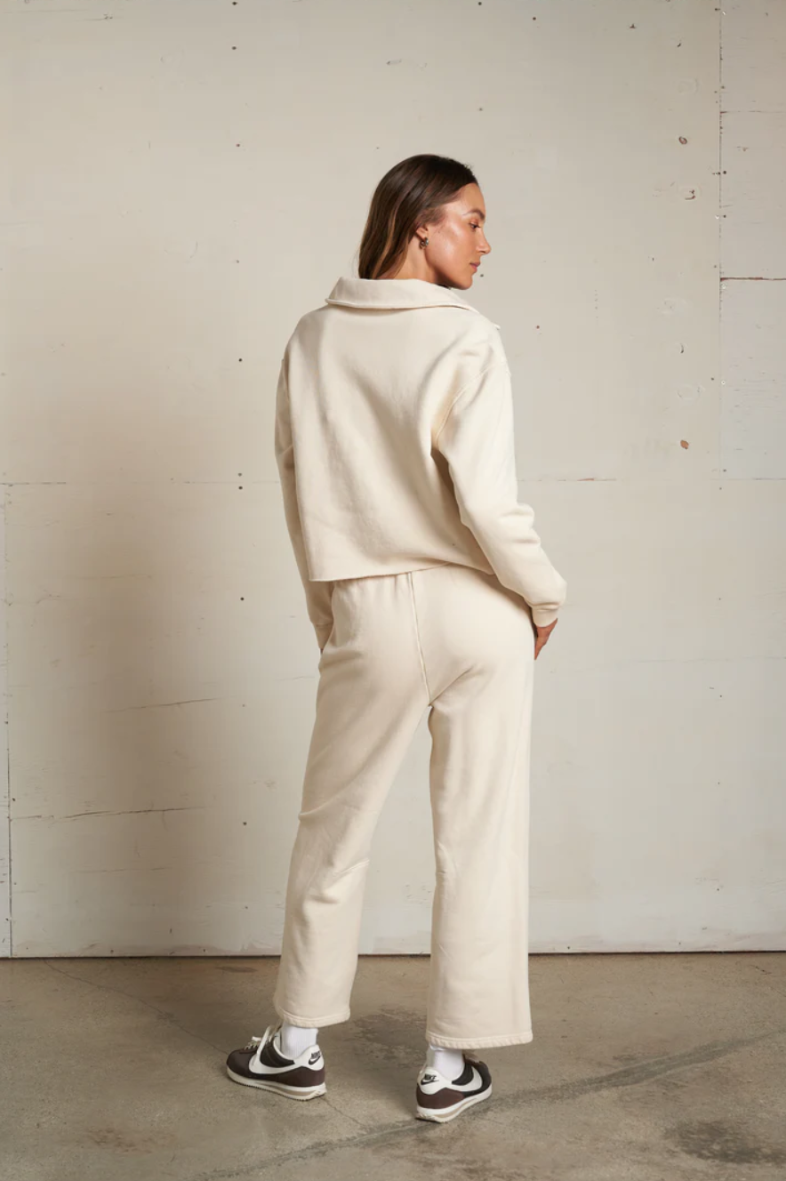 We love the Vinny because it’s the perfect companion to the fallon bottom, creating a set that feels both comfortable and put-together. Whether it’s school pick-ups, airport travel, or a busy day of errands, this top makes everyday dressing simple without sacrificing style. The raw hem adds just the right amount of edge to a classic fleece design.